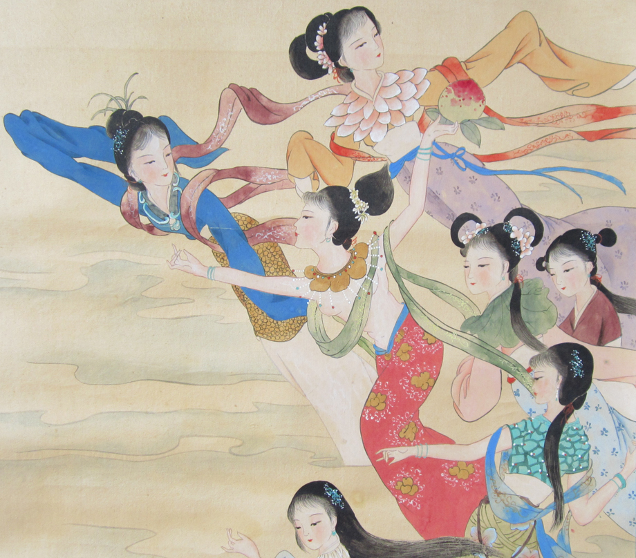 Yushan painting pioneered 70's silken paste fairy and fantastic painting character painting has been framed handdrawn tea room library painting