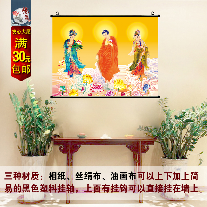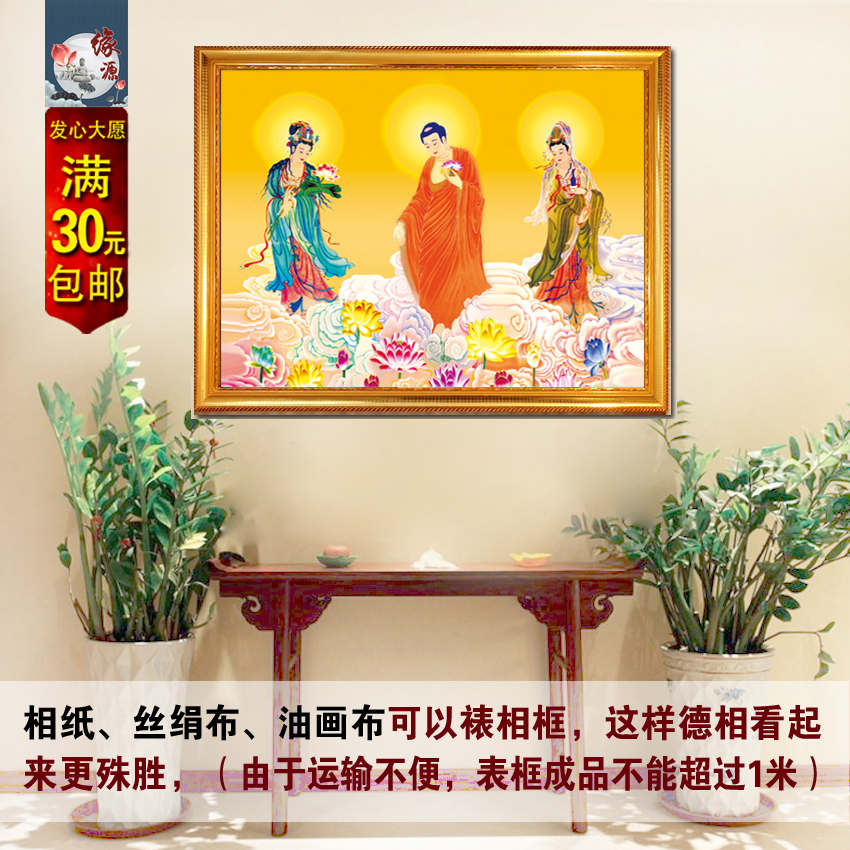 The Three Noble Buddhas of the West, Amitabha, Guanyin Bodhisattva, Dashi to Bodhisattva, Buddha Statue Hanging Painting, Buddha Painting, Buddha Painting