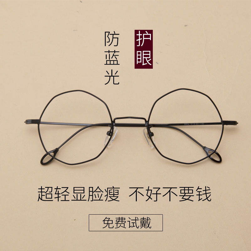 Polygon frame retro round glasses female flat lens personality myopia frame male glasses frame Korean version mirror