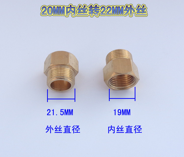 Metric copper change connector 22mm inner wire to 20mm outer wire conversion connector water pipe sprayer tube conversion connector