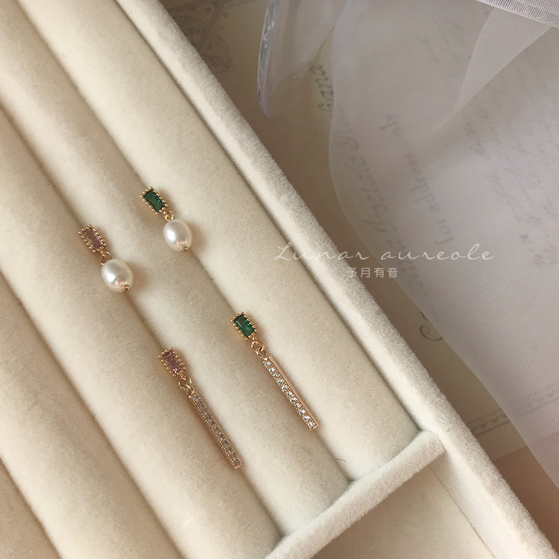 * Echo Echo* French Emerald Stud Earrings Freshwater Pearl Asymmetric High Quality Earrings Gift
