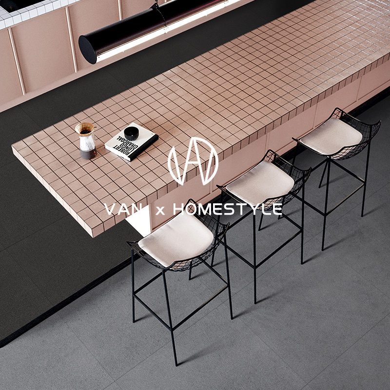 Van Nei's minimal living room kitchen and beyond Nordic tile tiles gray 600X 600 cement tiles