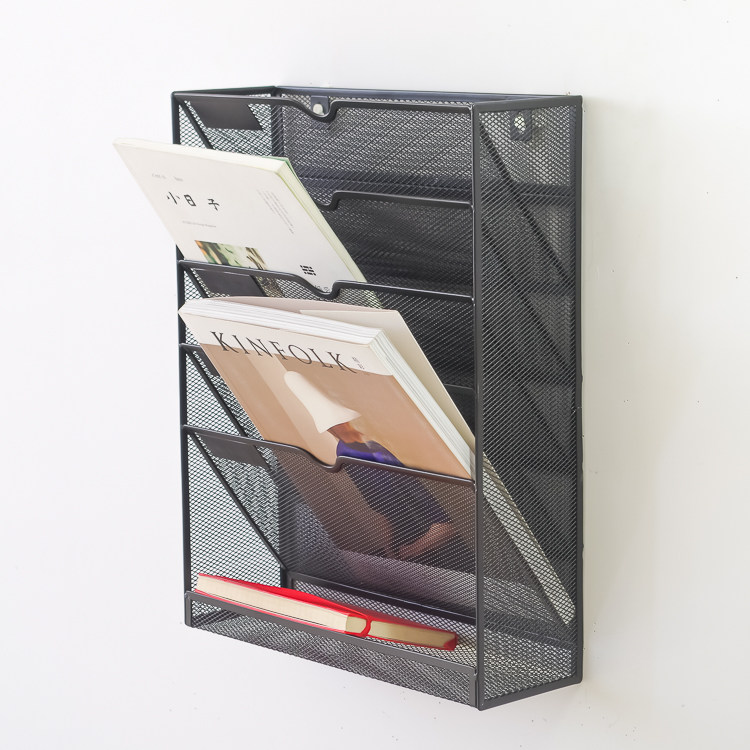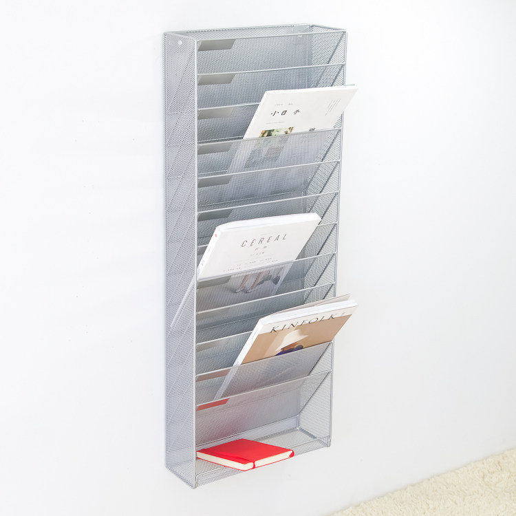 Wall-mounted document rack Newspaper rack 12 grid 5 grid magazine bar Wrought iron A4 display rack hanging wall classification and collation of information