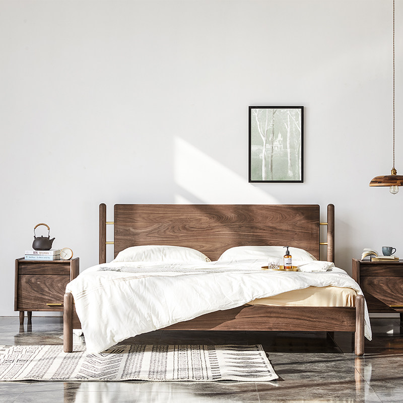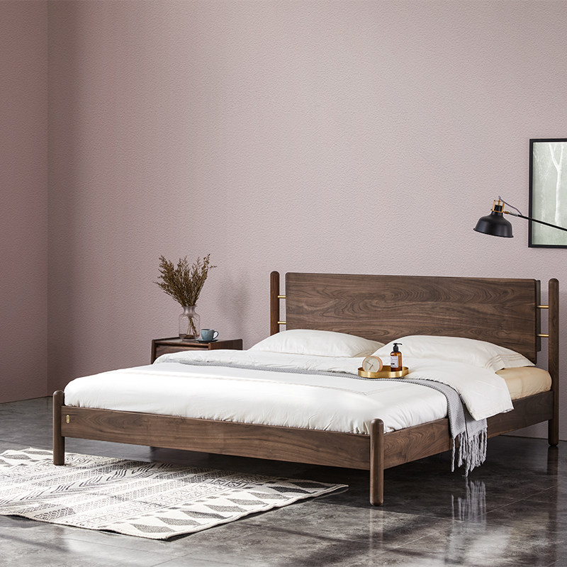 Nordic solid wood bed light luxury post-modern minimalist master bedroom double 1 8 m 5M black walnut original frame European and American furniture