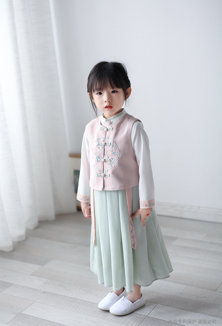 Girl's Handwear jacket 2022 Children's dress Spring baby embroidery Machia Long dress GuWind suit girl China Wind Down