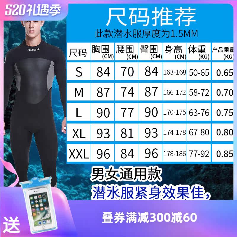 HISEA diving suit 1 5mm long sleeve warm diving suit for male and female universal couples even body sunscreen swimming surf