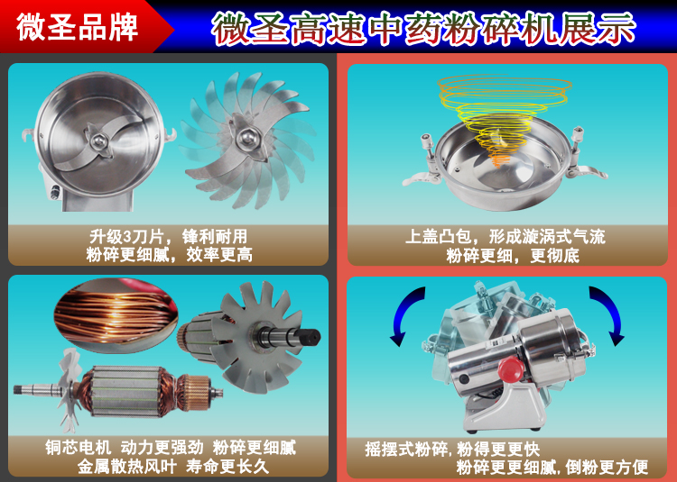 Micro-Holy Mill Chinese herbal medicine powder feed Panax notoginseng bone pepper corn 1000g commercial mill steel mill