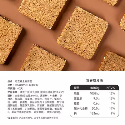 Photosynthetic Power Chia seeds whole wheat bread non-sugar-free zero 0 low breakfast fat card whole box of healthy meal toast