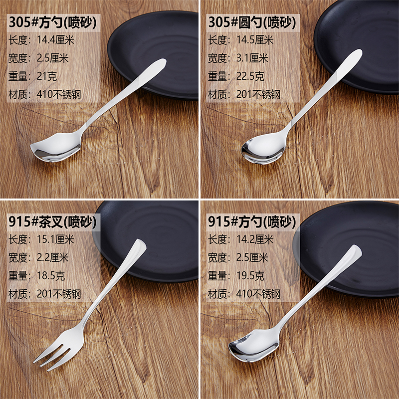 303#方勺(sandblasted) 303#圆勺(sandblasted) 304#茶叉304#方勺305#方勺(sandblasted) 305#圆勺(sandblasted) 915#茶叉(spray