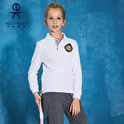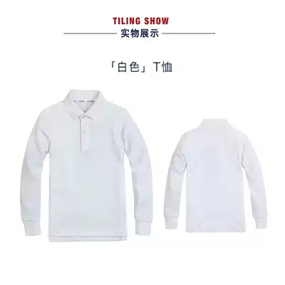 Eaton Gide primary school school uniform boys and girls white POLO lapel color strip placket stick tennis long-sleeved T-shirt