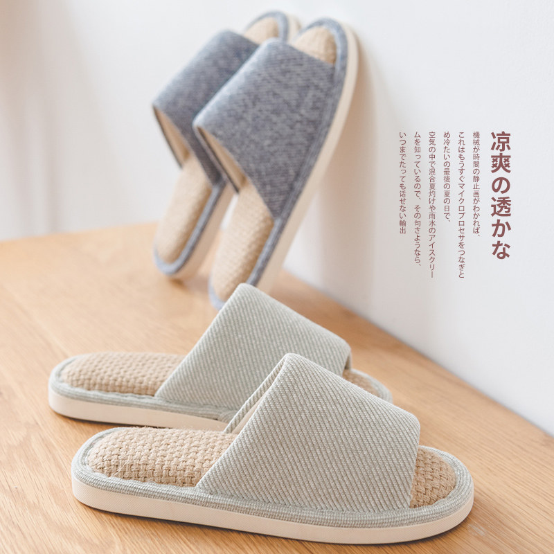Day Style Thick Bottom Linen Slippers Fall Couples Home home Interior Non-slip Deodorized Silent Soft Bottom Comfort Men and Women