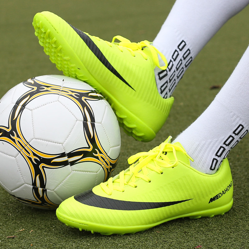 Orange Football Shoes for football and soccer socks and leg guard boards and shoes bag Broken Nails Tf Short Stud Shoe Training Contest