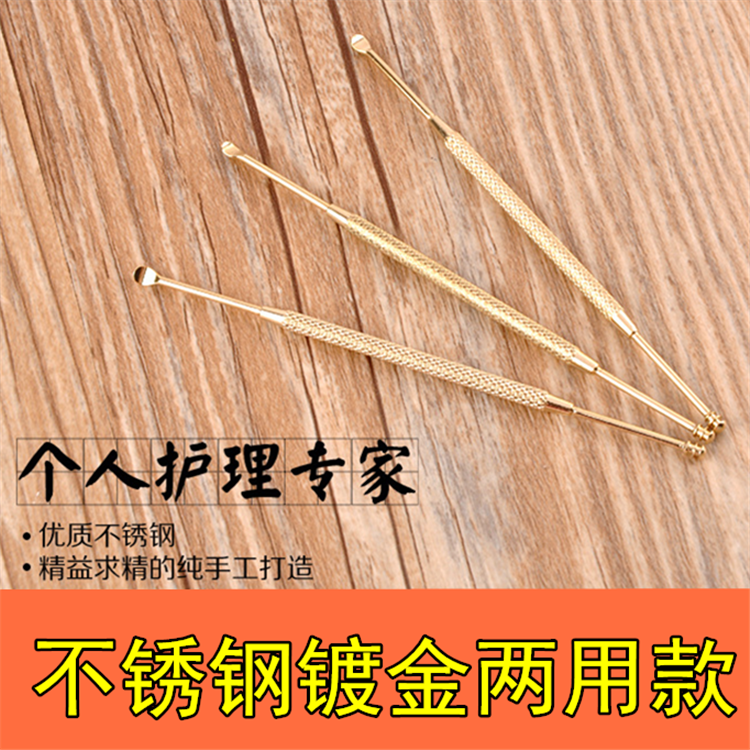 Stainless steel spring dual-use earpick stainless steel gilded earpick stainless steel dual-use ear spoons stainless steel anti-slip dual-use ear spoon stainless steel bamboo joint ear spoon stainless steel round head dual-use ear spoon brass spiral earpick spring
