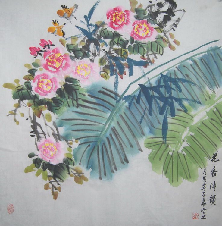 Special price pure hand painted four feet of square Chinese painting flowers and birds Living room dining room Dining Room Decoration Painting Chinese Character Painting without drawing