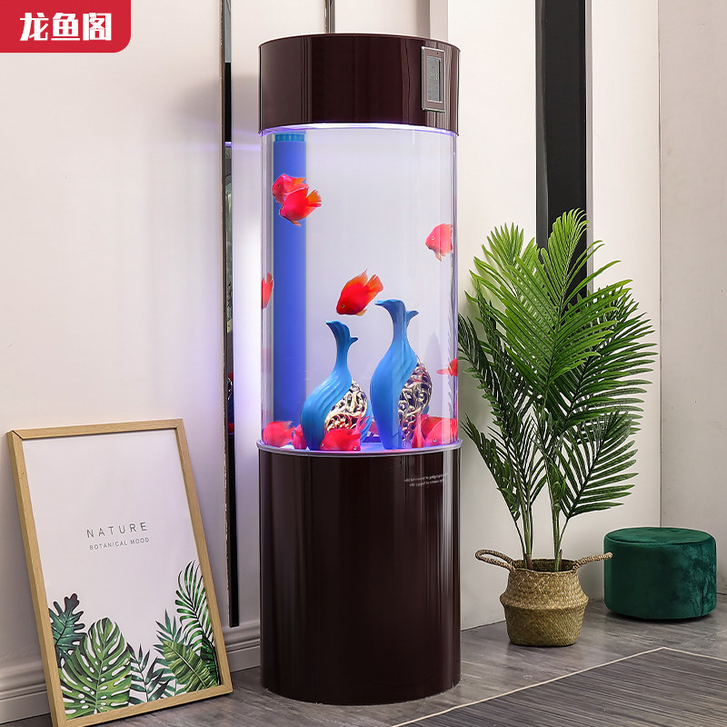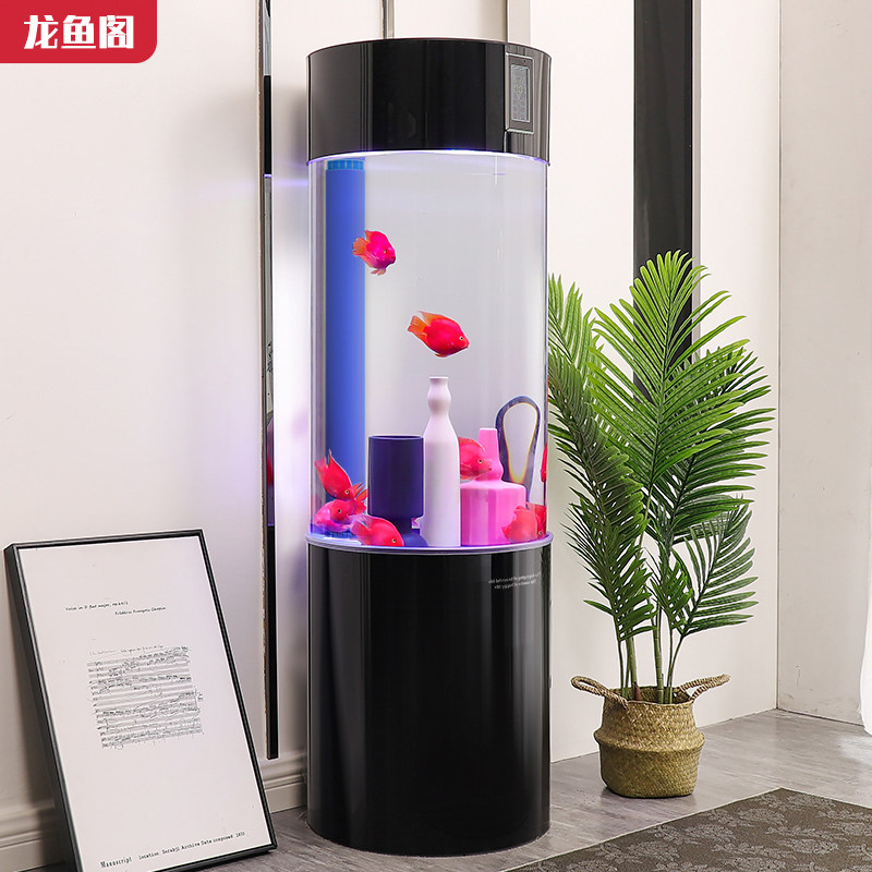 Dragon Fish Pavilion Cylindrical Living Room Household Small and Medium White Black Fish Tank Under the Filter Ecological Lazy Aquarium