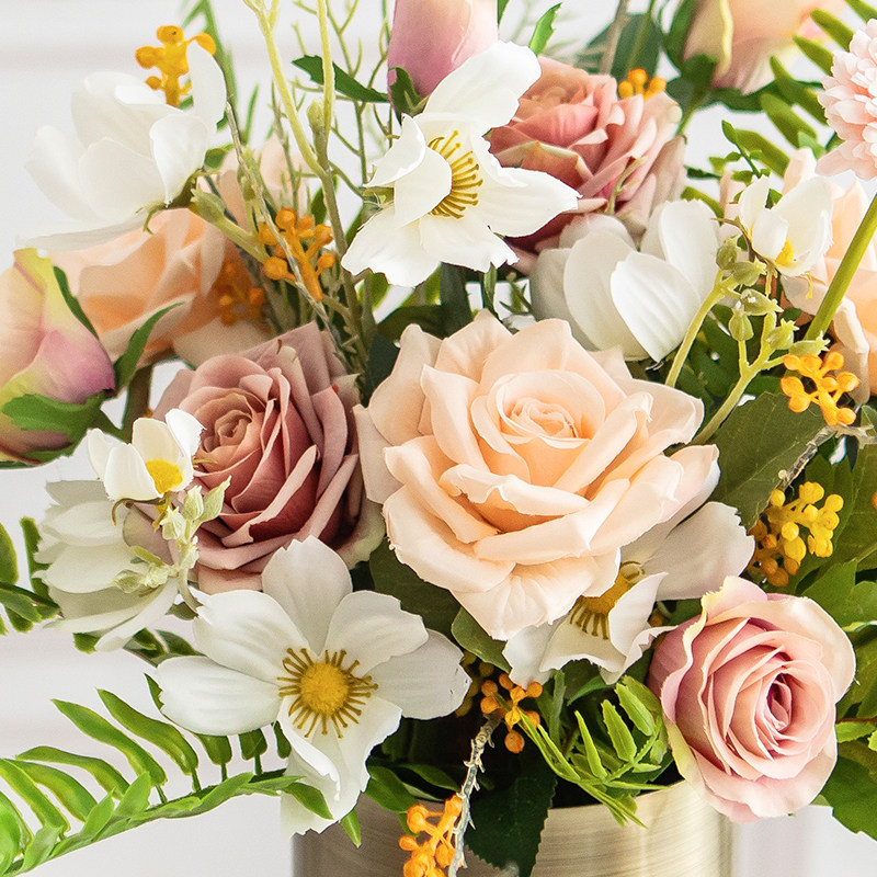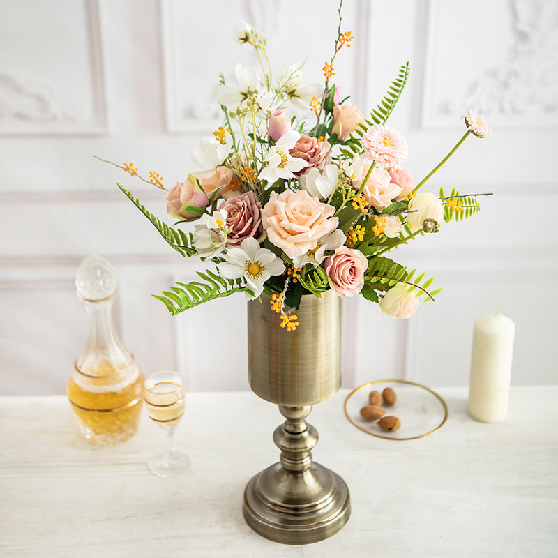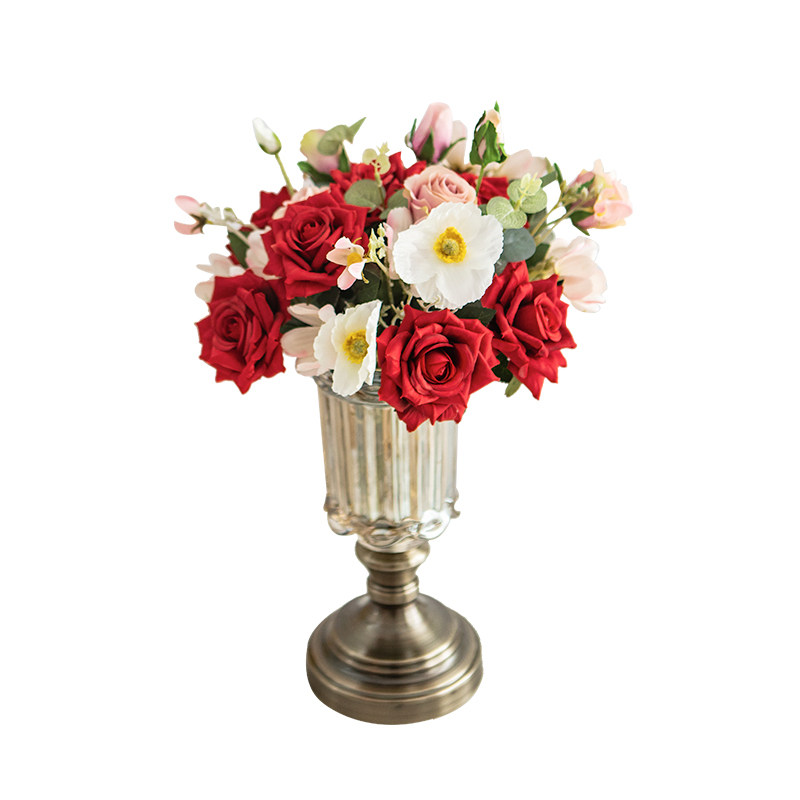 Eurostyle Crystal Glass Floral Flower Arrangement Fake Flower Vase Flower Vase Bouquet Suit Home Living Room Adornment Pendulum