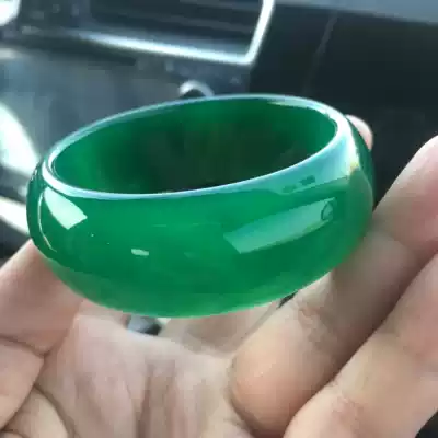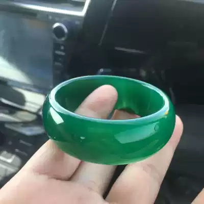 Xinjiang chalcedony bracelet widened Hetian agate jasper ice bottom jade bracelet green female natural A goods belt certificate