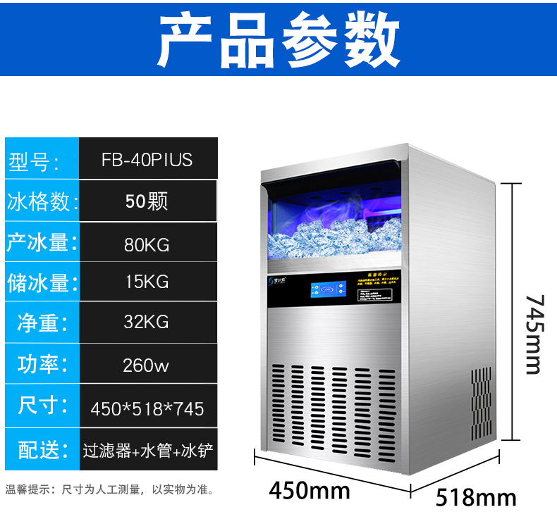 Snow Ice Springs Ice Maker Commercial Milk Tea Shop 80kg Small Fully Automatic Block Large Capacity Ice Maker Coffee Shop