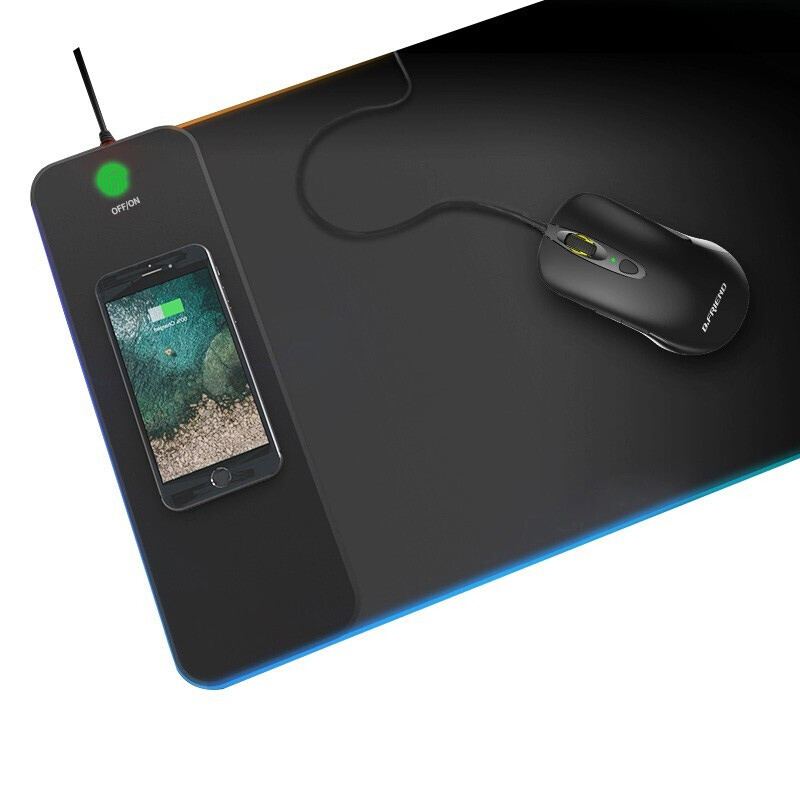 Wireless charging MOUSE PAD UNIVERSAL MOBILE PHONE FAST CHARGING RACE GAMES OFFICE THICKENING RGB GLOW OVERSIZED MOUSE PAD WATERPROOF ANTI-SLIP KEYBOARD PAD WITH MOBILE PHONE WIRELESS CHARGER