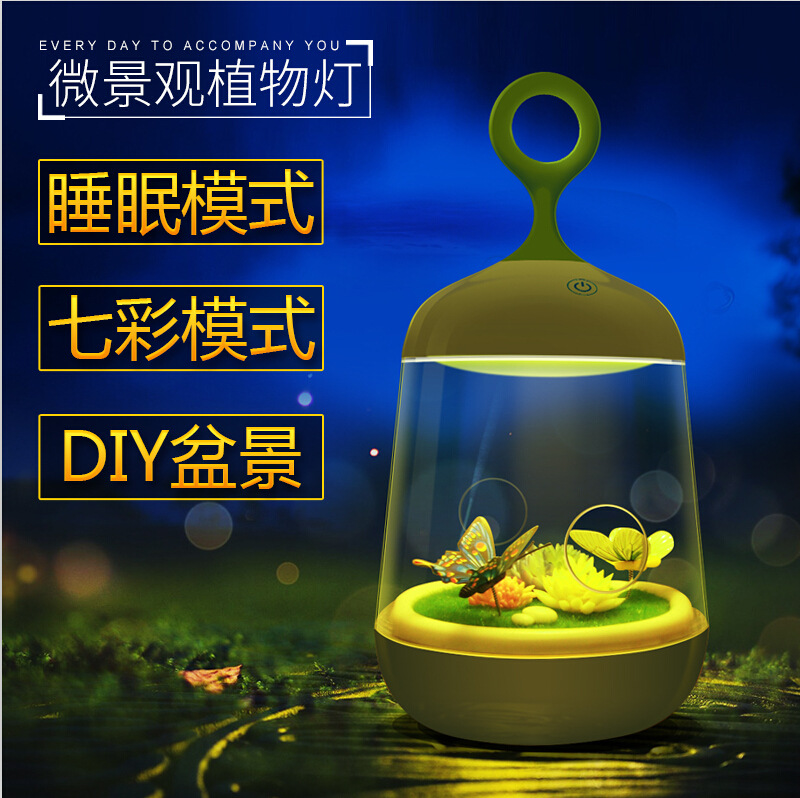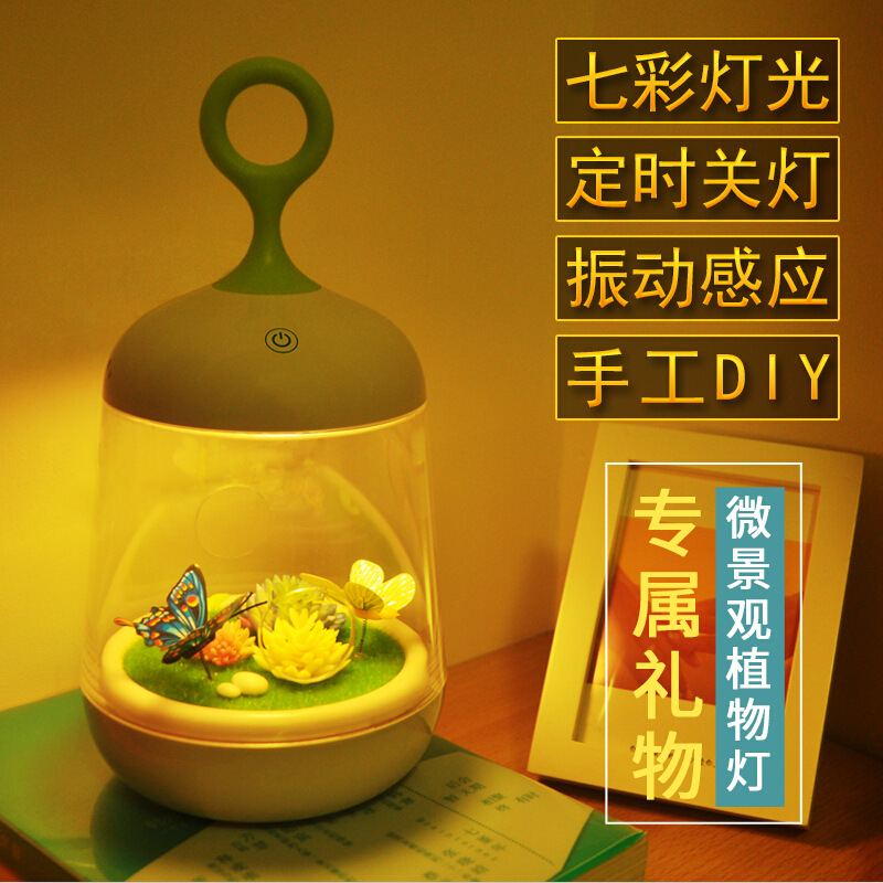 Mini Micro Landscape Moss With Lamp Glass Eco Bottle Creative Plant Potted DIY Girl Day Gift for Valentine's Day