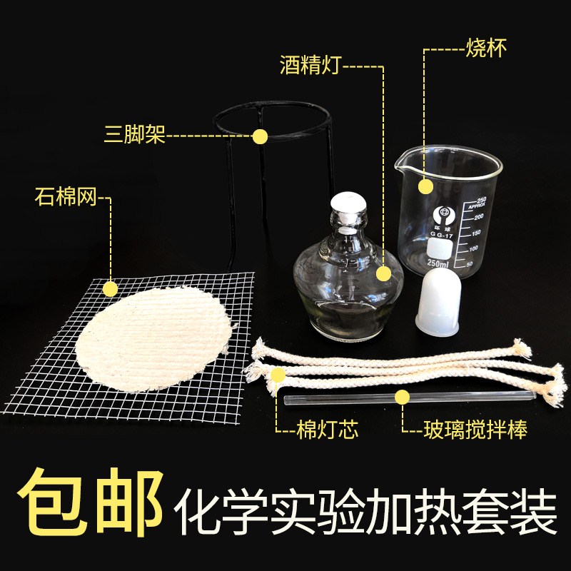 Heating Package One Wine Fine Lamp Asbestos Mesh Tripod Alcohol Burn Cup Stirring Rod DIY Agitation Tool Complete Chemical Laboratory Supplies Equipment Teaching Aids Teaching Aids Consumables