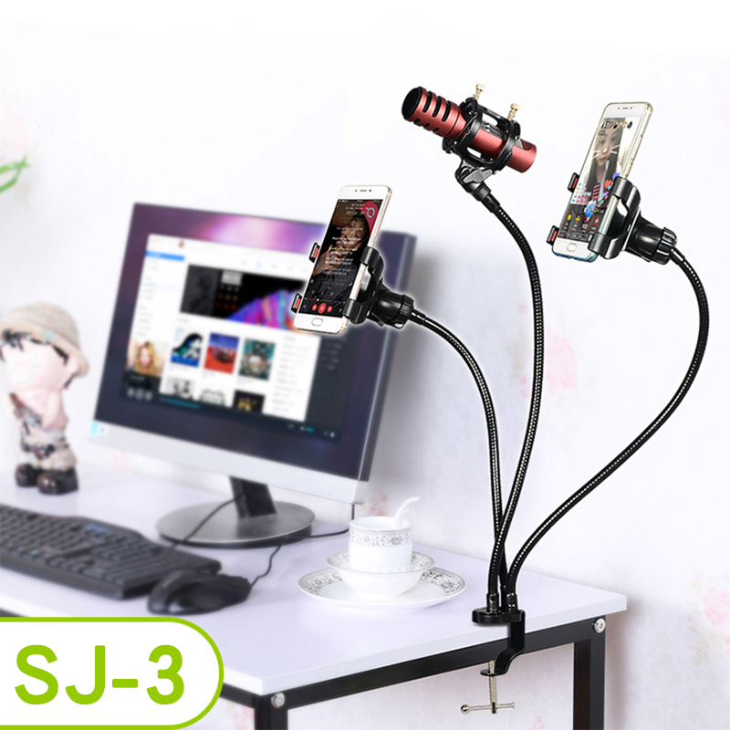 The Phantom Sound SJ-3 Dual Cell Phone Live Bracket Mesh Red Anchor K Song Metal Hose Microphone Shockproof Clip Tabletop Bracket