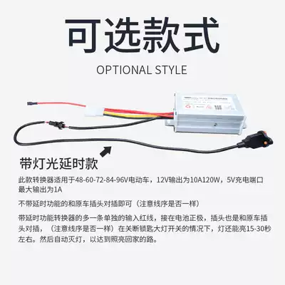 Electric vehicle power supply DC conversion reducer 48V96V to 12V5VUSB mobile phone charging light delay