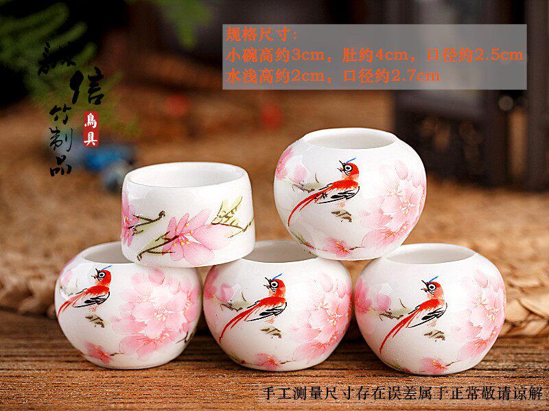 White blue and white rich and auspicious (set) birthday bird peony (set) white background blue and white peony (set) freezing point peach blossom (set) white background crane (set) white background small high pot pattern random (set) white background bamboo pattern random