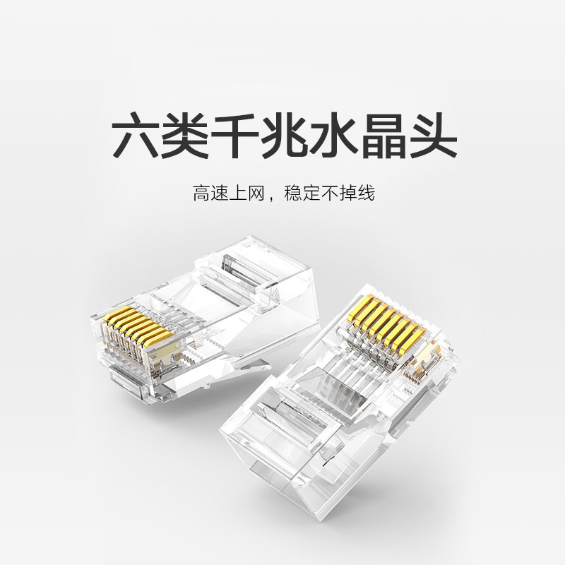 Green Union Six Class Crystal Head one thousand trillion Internet Crystal Head Computer shielded Internet Line Connection Head Engineering Grade pure copper gold plated