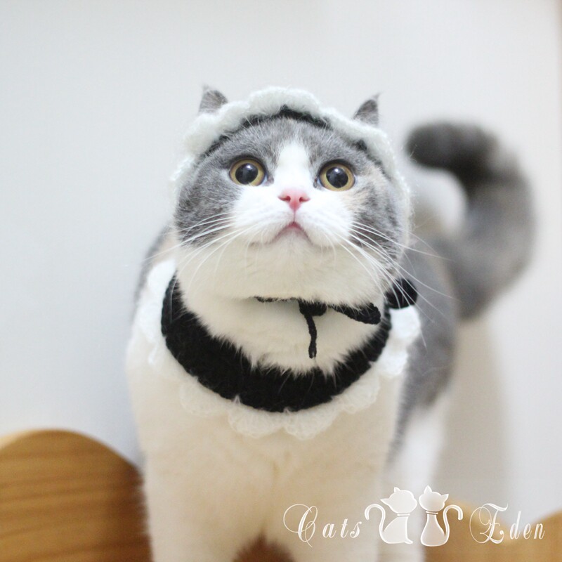 Pet cat maid hat collar set collar fake collar lace hat scarf photo dress up