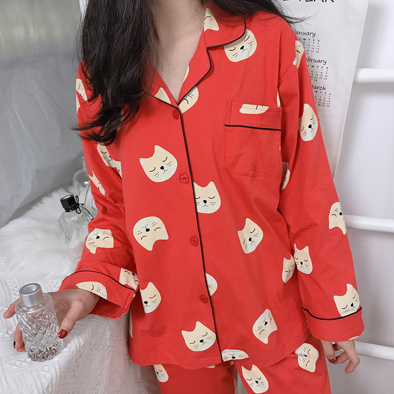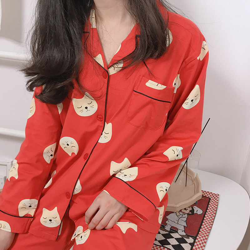 This year's birth year shows white orange red Korean version pajamas women's pure cotton ins fashion lazy style simple fresh spring and autumn home clothes