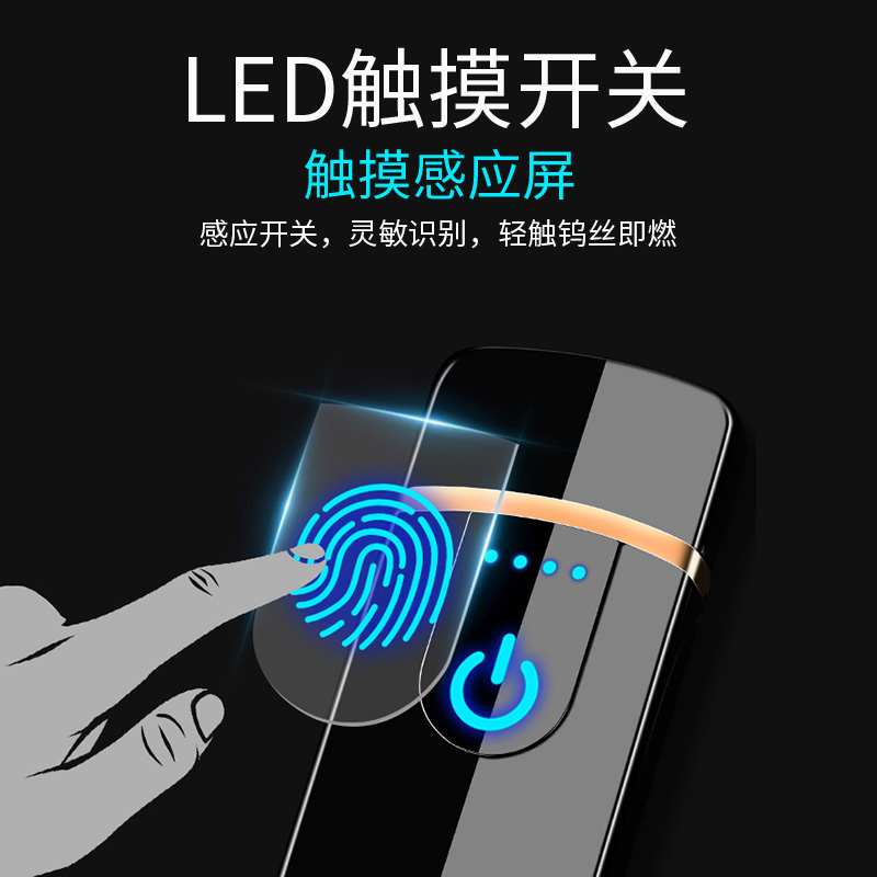 Internet celebrity fingerprint sensor windproof lighter charging creative personality peculiar men's ultra-thin USB electronic cigarette lighter