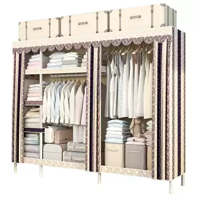 Wardrobe simple cloth wardrobe steel pipe thickening reinforcement fabric hanging wardrobe single full steel frame double economy thickening