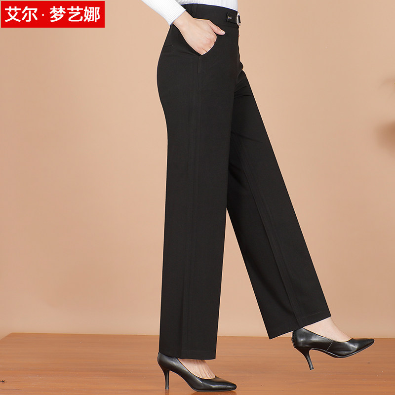 Mom wide leg pants spring and autumn high waist stretch middle-aged women's pants loose middle-aged women's autumn and winter wide pants 40-50 years old