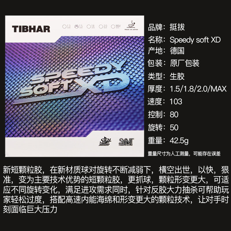 TIBHAR straight German imported raw rubber set rubber single rubber table tennis Speedy Soft XD 74-032