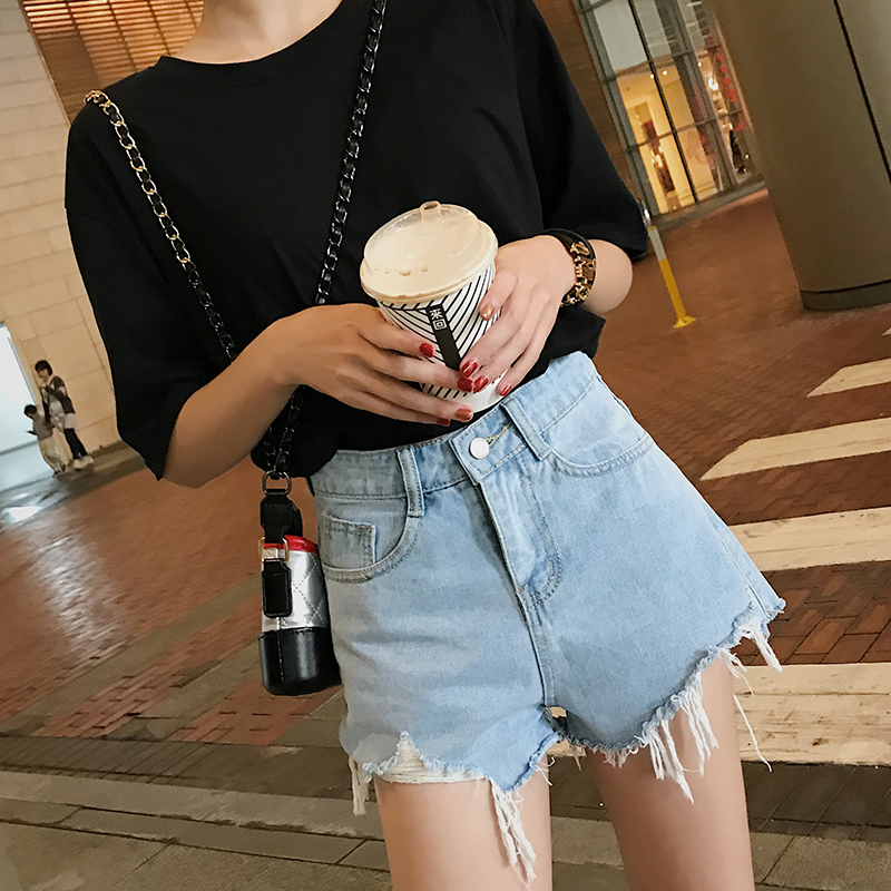 Song Zong En High Waist Jean Shorts Women Summer 2021 new Korean students loose and thin leg wool hot pants