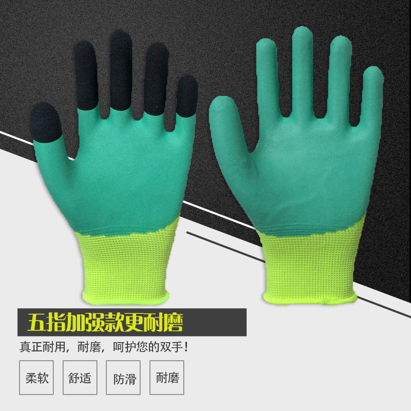 Reinforced foaming breathable latex gloves abrasion-resistant reinforced finger wrinkled anti-slip working gloves abrasion-resistant