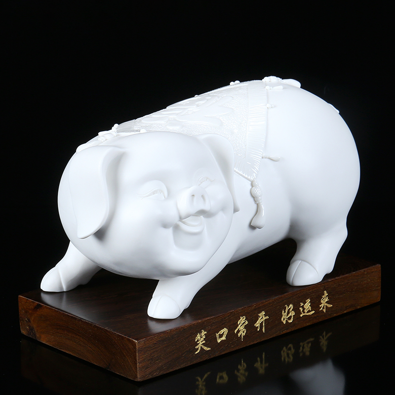 Ligne Kilns Li Chia Tucco White Porcelain Sculptures Craftsmanship Gift Pendulum Decorated with ceramic pendulum Decorative Laughs At the Pig Year Hem