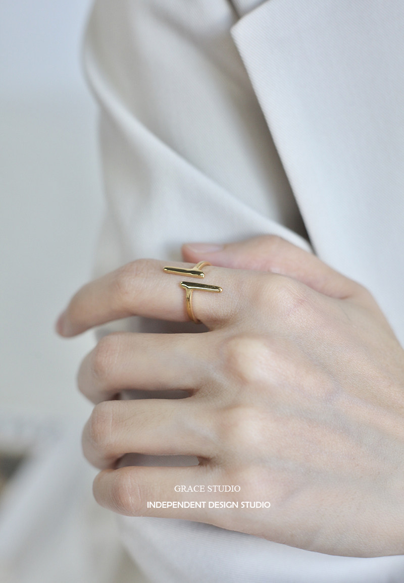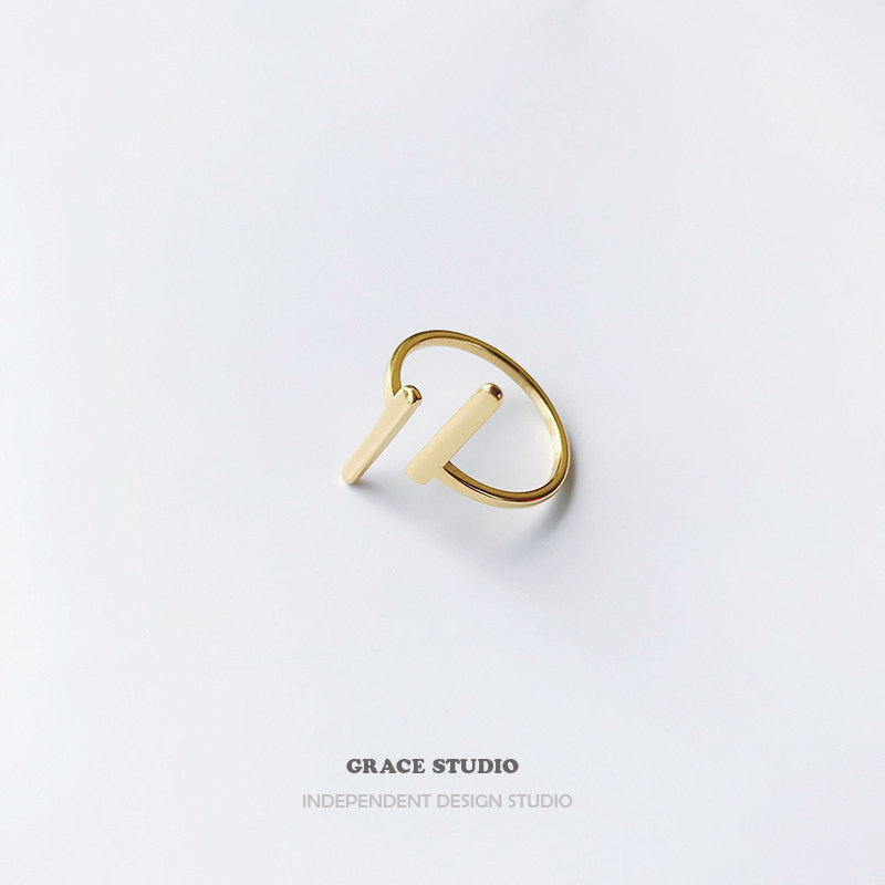 G S Parallel Designer Ring Niche Minimalist Geometric Lines T-Shaped Open Ring