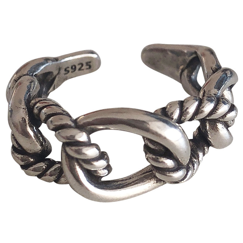 Net red fashion personality chain opening ring overall 925 pure silver anti allergy delicate Korean version index finger ring