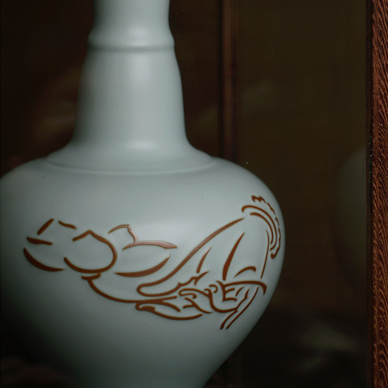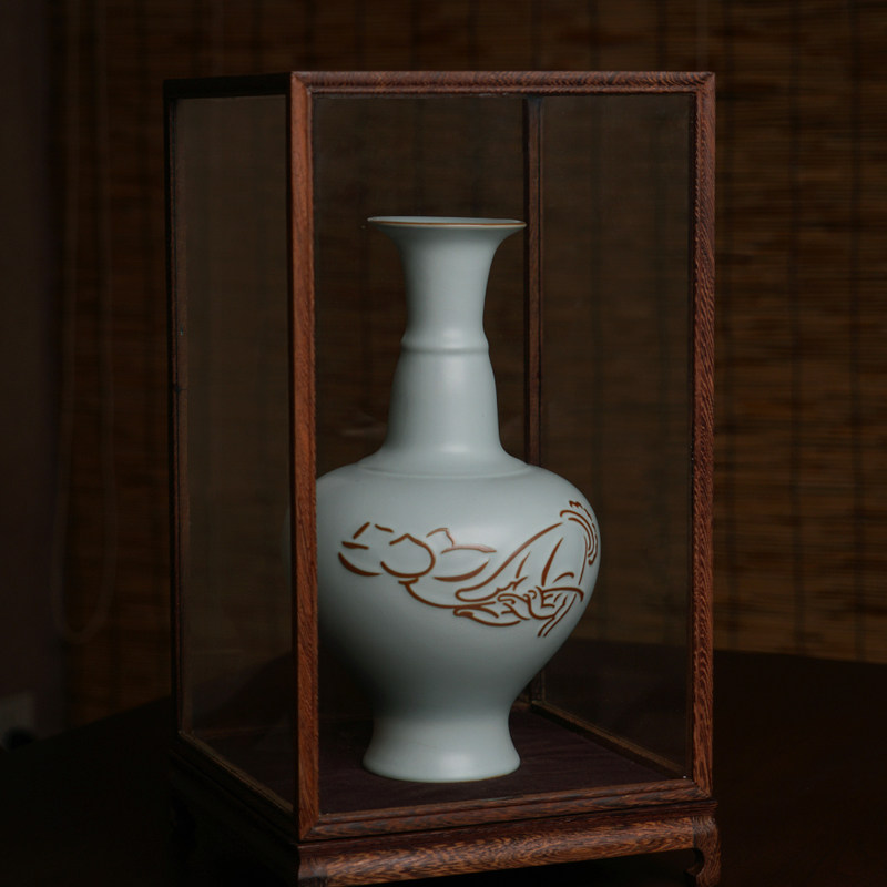 Qingtan Ru Kiln Vase Ornament Flower Vessel Home Living Room Decoration Gift Retro Jingdezhen Ru Porcelain Tianqing Porcelain