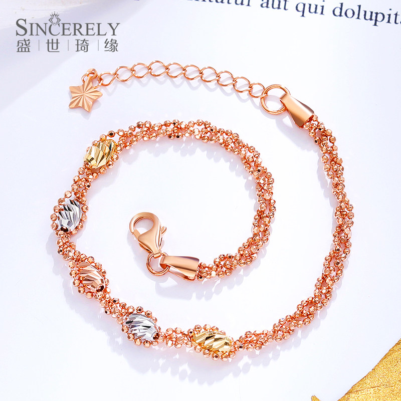 Sheng Shiqi Rim 18k Gold Handmade Women's Color Gold Bracelet au750 Rose Gold Bracelet Fashion Transfer Pearl Jewelry