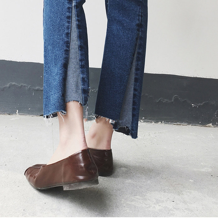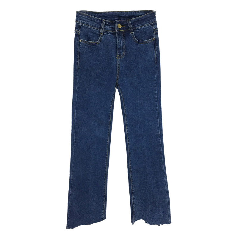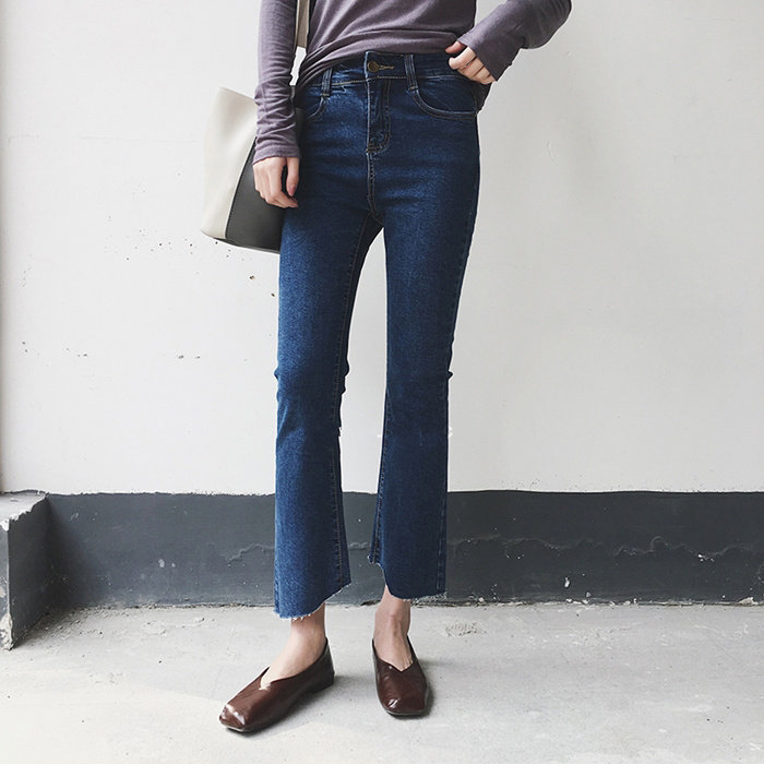 Big size dark blue split jeans women's 2021 new fat sister mm micro flared pants slightly fat thin pants