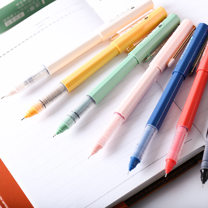Morning Light Primary Color Series Straight Liquid Type Water-based Ballpoint Pen Anise Pen Anise Pen 0 5mm 5mm Full-Tube Office Students Large Capacity Black Waterborne Pen Signature Pen Naked Color Control Straight Fluid Pen Tilde