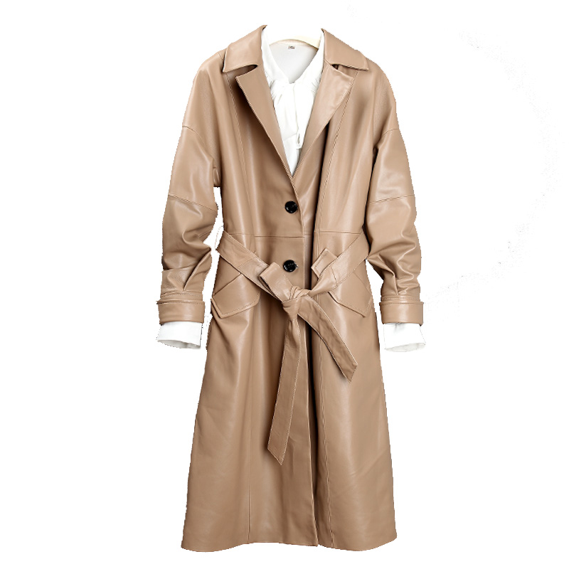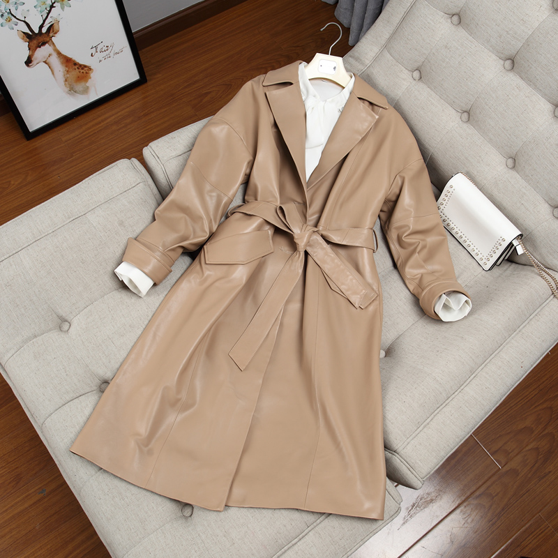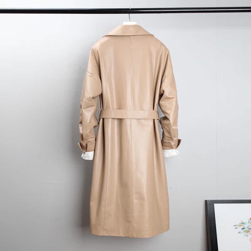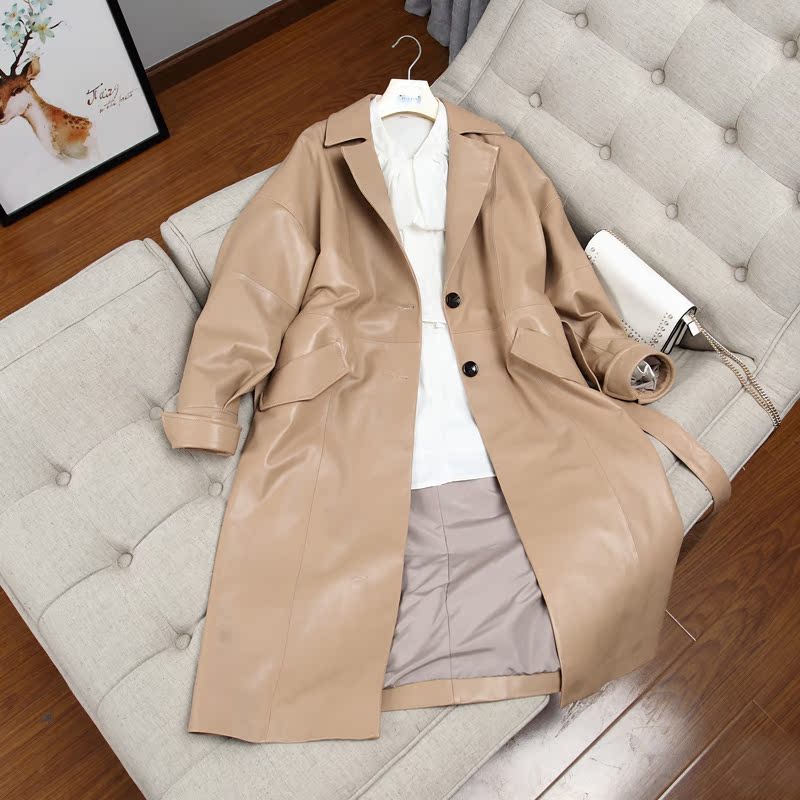 Don't show large size leather women's long version of 200 pounds fat mm Korean version of thin spring and autumn new sheepskin leather trench coat