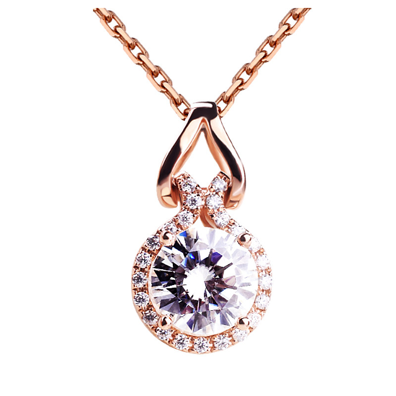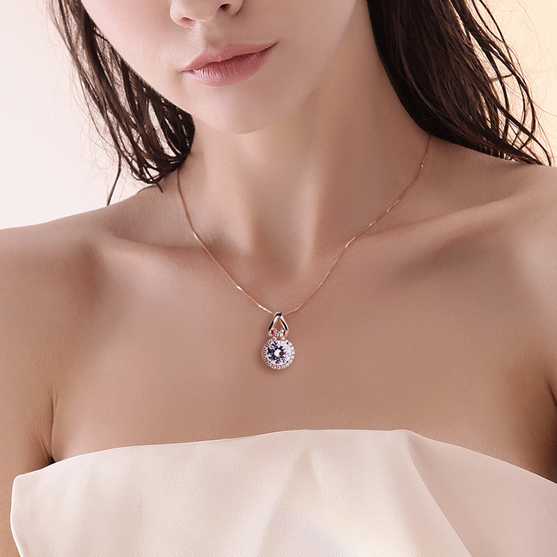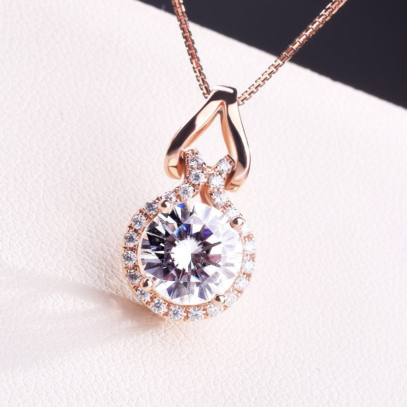 American Imported Mosanstone Drill Pendant Women 18K Rose Gold 1 Carat Diamond Collarbone Necklace Light Lavish Fashion Gourd