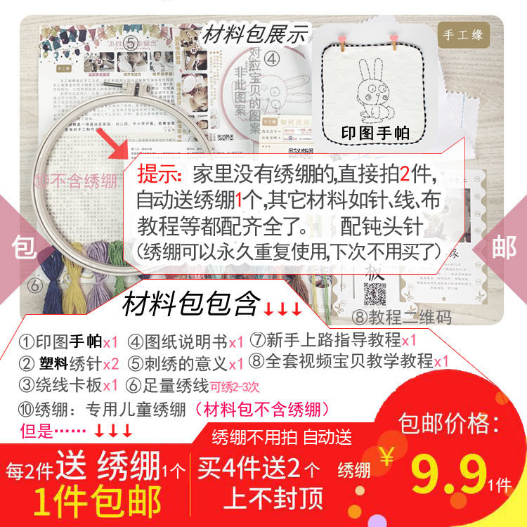 Kindergarten embroidery plastic needles can be used as face towels, handkerchiefs, handkerchiefs, children's handmade simple diy material packs