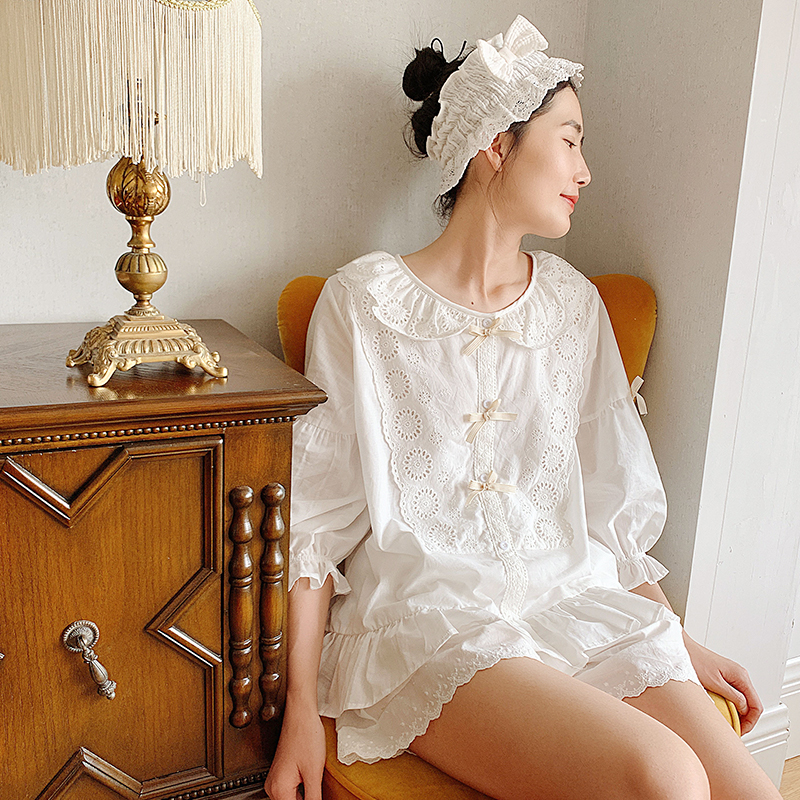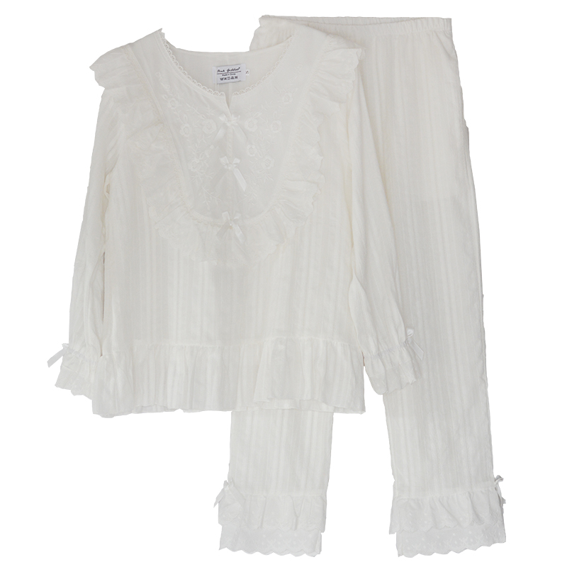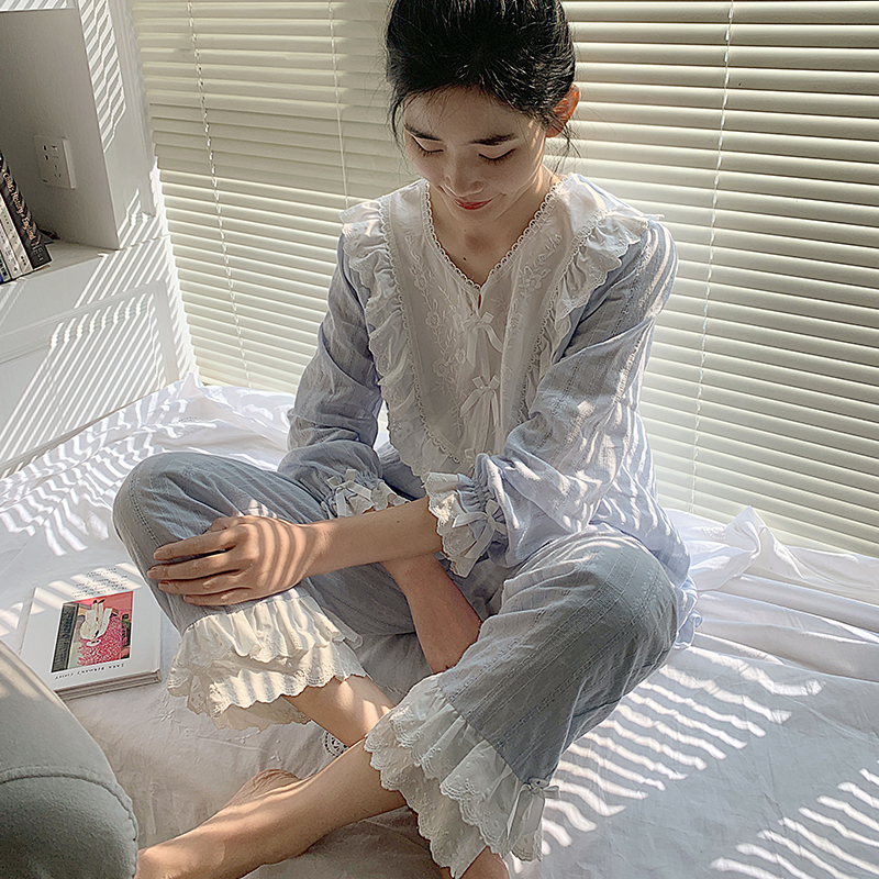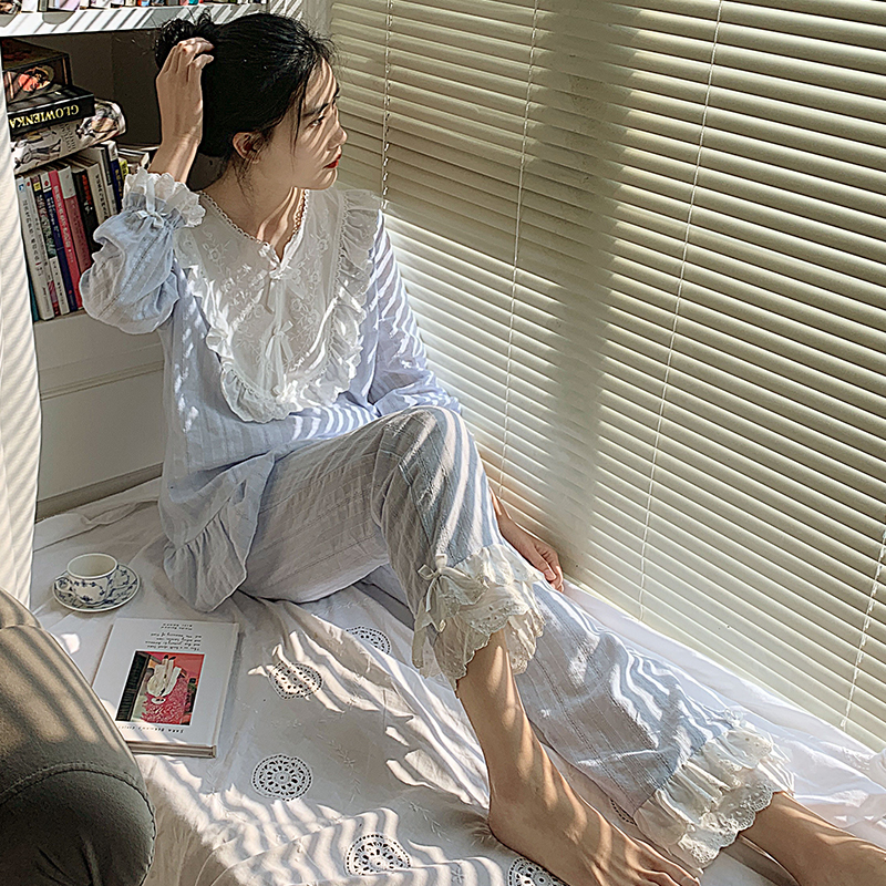 Sleepwear Spring and Autumn Girl Pure Cotton Lace Long Sleeve White Exterior Wearing Cute Princess Summer Palace Tinder Suit Fairy