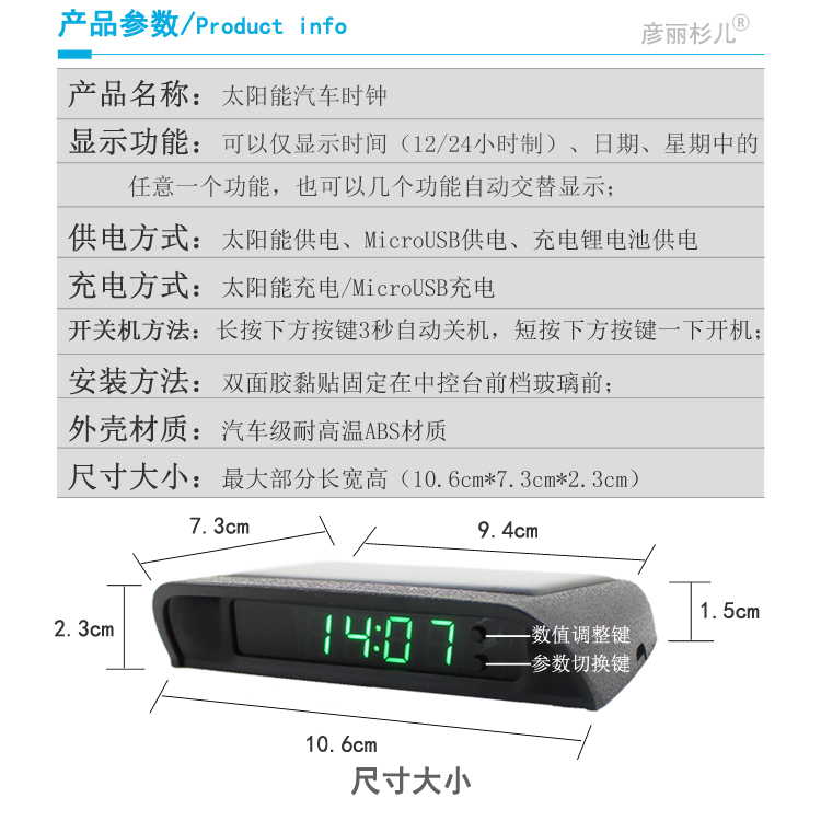 Normal Shipping Solar Luminated On-board Clock Car High Precision Electronic Watch Car Clock Thermometer Free From Wiring