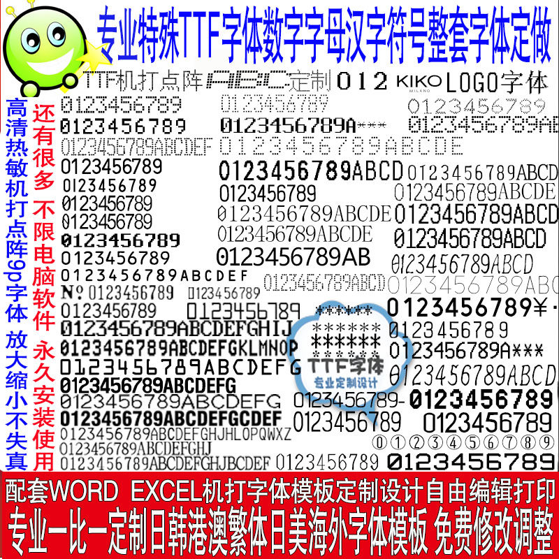 Professional ttf special digital alphabet character thermal-sensitive font array dot typeface customized one-to-one
